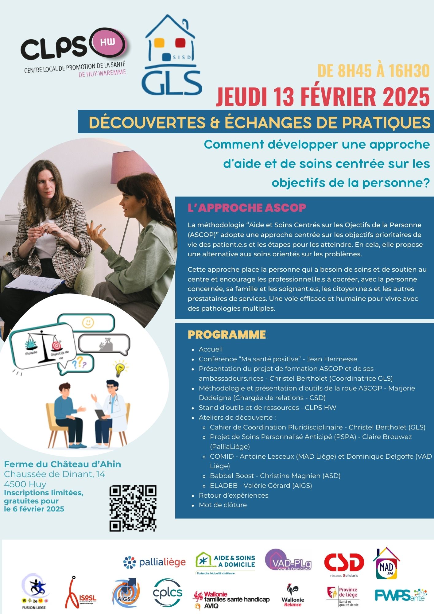 Intervenant.es : Jean Hermesse, Christel Bertholet (GLS), Valérie Gérard (AIGS), Antoine Lesceux (MAD Liège), Dominique Delgoffe (VAD Liège), Claire Brouwez (PalliaLiège), Marjorie Dodeigne (CSD).